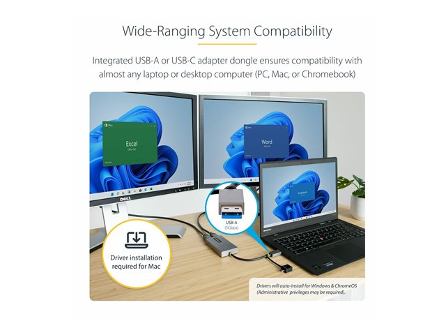 USB 3.0 to HDMI Multi-Monitor Display Adapter for Laptop (107B-USB-HDMI) - Videokort - USB typ A, USB-C hane till 2 x 19 pin HDMI Type A hona - grå - stöd för 4K