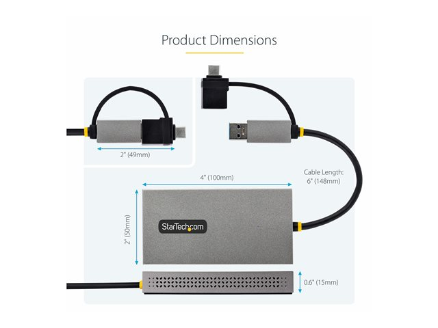 StarTech.com USB to Dual HDMI Adapter, USB A/C to 2x HDMI Monitors (1x 4K 30Hz, 1x 1080p), Integrated USB-A to C Dongle, 4in/11cm Cable, Windows & macOS