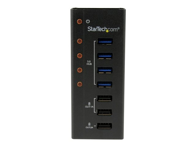 StarTech.com USB 3.0-hubb med 4 portar plus 3 dedicerade USB-laddningsportar (2x 1A & 1x 2A) ? väggmonterbart metallhölje